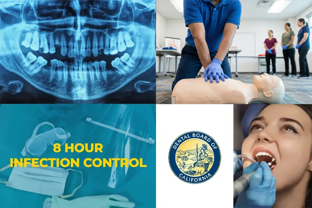 Fulfills the California Dental Board biennial requirements for relicenser. This is not for new licenser of the RDA. An 8 hour Infection Control Course is required for all new Applications of the RDA. This course covers general infection control regulations for dentistry. Understand barrier protection and disinfection procedures to control the transmission of microorganisms.